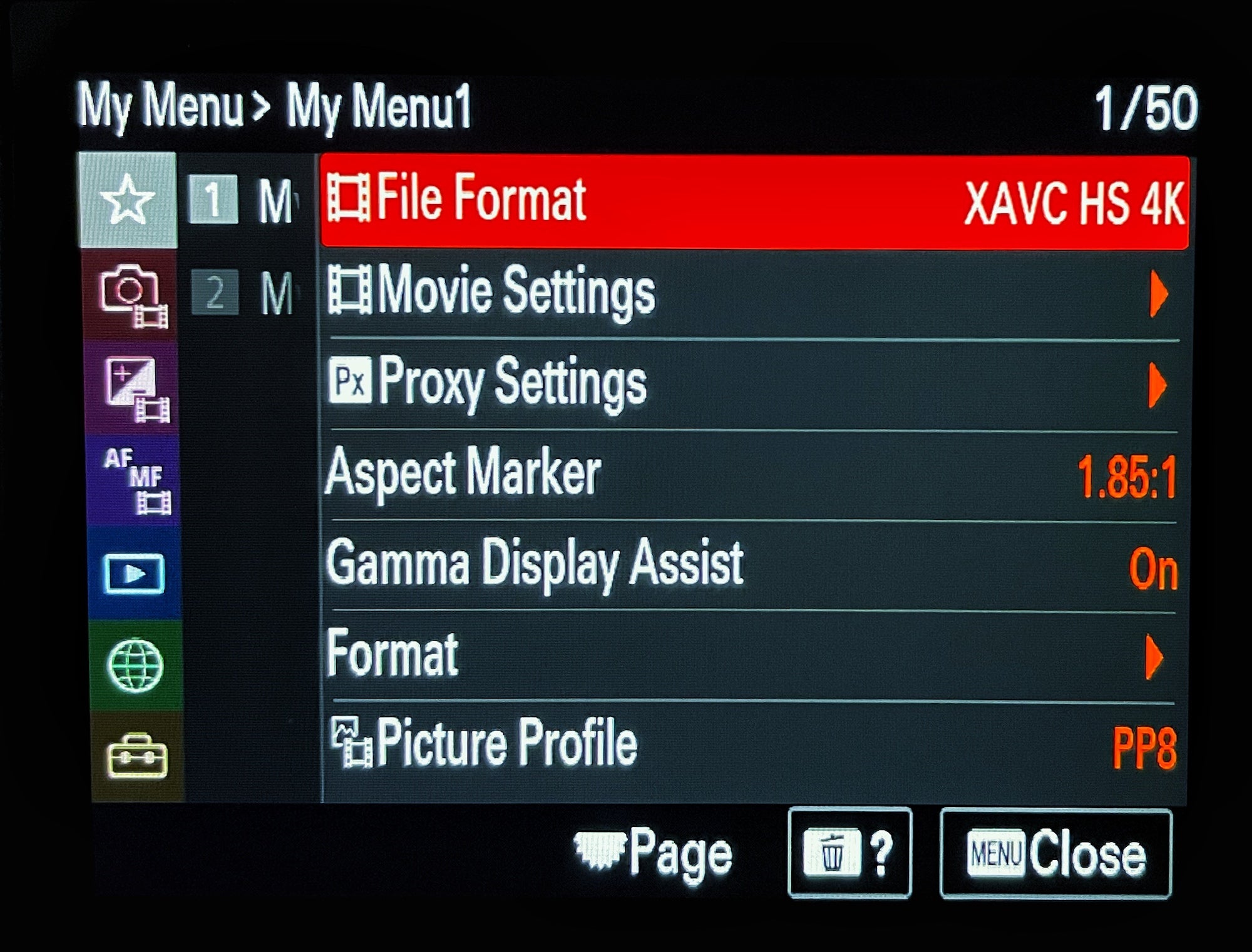 Lo primero que D'Alia configura en su menú personalizado es el formato de archivo. Para ello, dice que hay que preguntarse qué se va a grabar. "¿Qué tamaño se va a grabar? ¿Con qué resolución? ¿Se va a grabar para la web? ¿Se va a grabar para videos de alta gama? ¿Se va a grabar en 4K? ¿Se va a grabar en Full HD? Eso es lo más importante. Si se busca calidad cinematográfica, se busca la máxima calidad. La Alpha 7S III tiene XAVC SI 4K, que es prácticamente la mejor resolución posible. Así que grabo en 4K prácticamente siempre. Con la Alpha 1, se puede llegar a 8K".