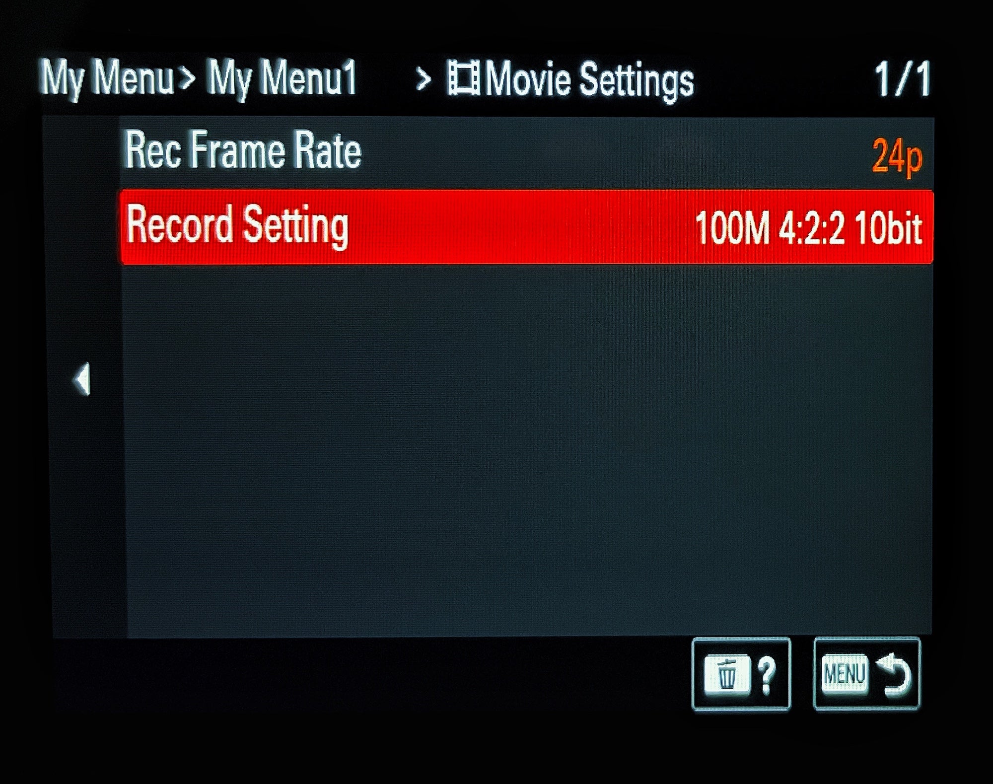 La segunda parte del menú personalizado de D'Alia para grabar videos es su configuración de video. Aquí es donde se encuentran la velocidad de fotogramas y la configuración de grabación. Para su estilo cinematográfico, graba a 24p y la configuración de grabación a 100M 4:2:2 de 10 bits. "Mucha gente graba a velocidades de fotogramas de 30 ó 60 porque es similar al estándar de televisión, pero si buscas una fluidez y un estilo cinematográficos, tienes que grabar a 24, y eso es lo que hago la mayor parte del tiempo".