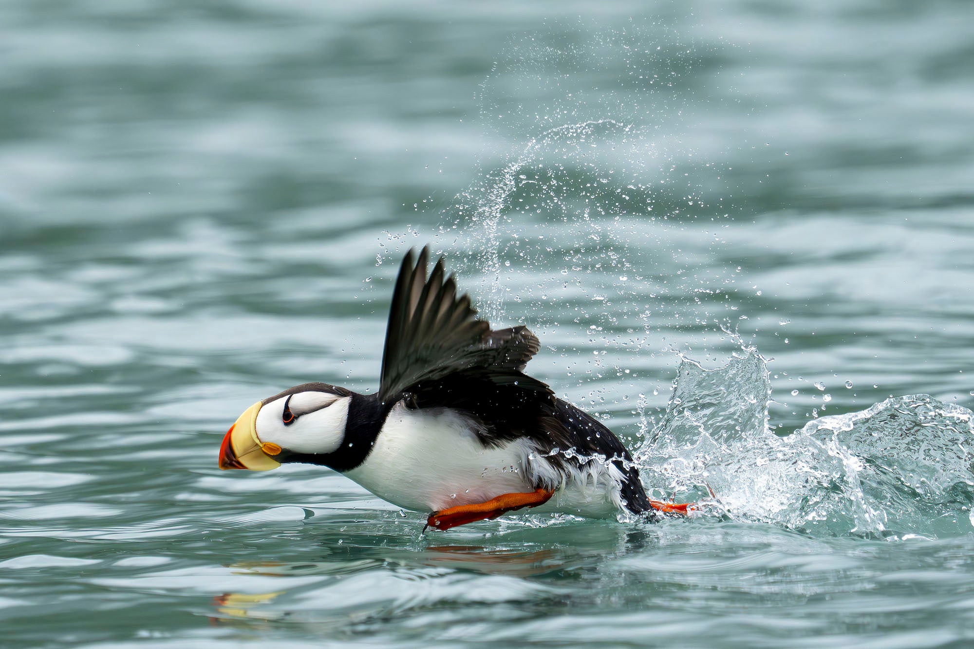 “Estaba en un barco y pasamos junto a unos frailecillos. Nunca había fotografiado frailecillos antes, así que esta era la primera vez que lo hacía. Además, la forma en que casi corría por el agua me pareció más interesante y es divertido verlos en la computadora porque tienen mucha personalidad”.