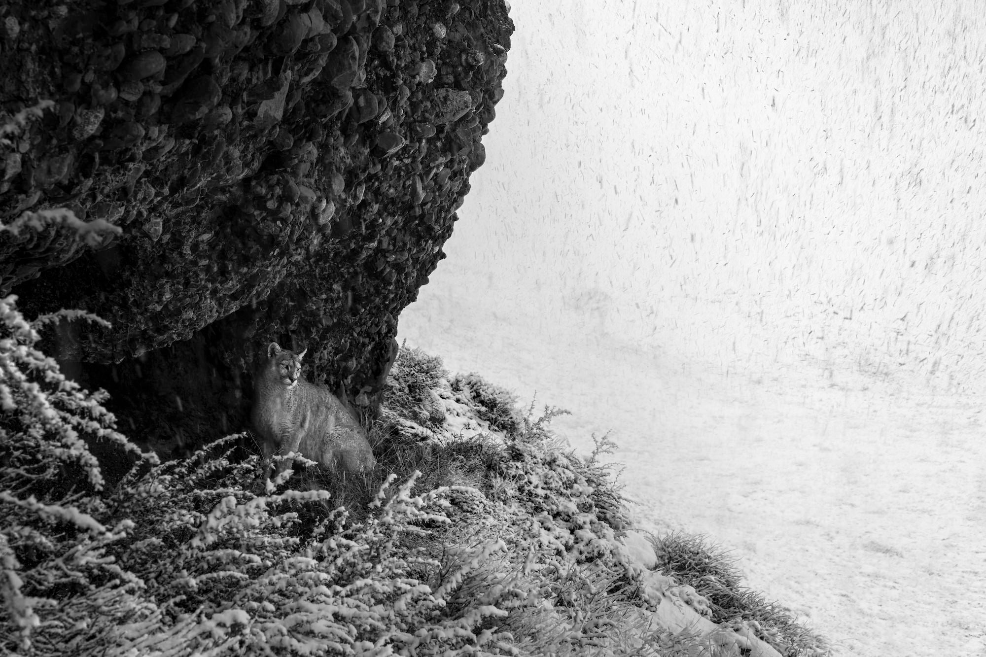 “Experimentar un momento como este, perdido en el sonido apagado de una tormenta de nieve a solo unos metros de uno de los animales más hermosos de la Tierra, fue el mejor regalo que jamás podría haber esperado. Este momento solo fue posible porque estaba en un área donde los pumas están protegidos, lo que permite que sus poblaciones se recuperen después de años de caza. Cuando le damos a la naturaleza el espacio para recuperarse y prosperar, presenciamos la vida en la Tierra como siempre estuvo destinada a ser: salvaje, cruda y más allá de toda imaginación".