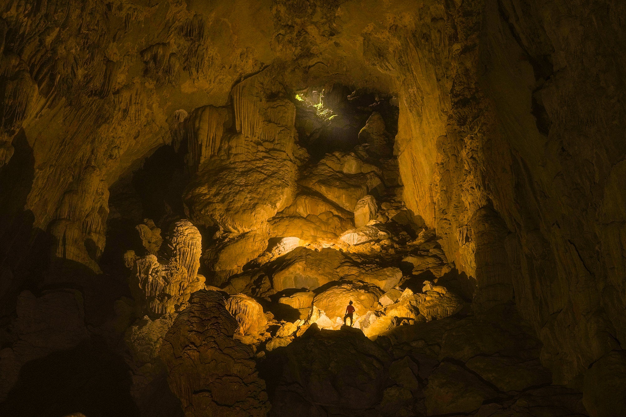 “Explorar el sistema de cuevas más grande del mundo, la expedición Son Doong en el centro de Vietnam fue una aventura increíble que me llevó a unos 250 pies por debajo de la superficie de la tierra. Después de cruzar varios ríos, vadear en la oscuridad, ascender y descender por terrenos accidentados con cuerdas y escaleras, llegamos a lugares realmente increíbles en esta expedición de varios días. Iluminar las cuevas y fotografiarlas fue surrealista e inspirador, ya que nunca antes había visto cuevas de este tamaño. Ver nubes rodando a través de algunas de las cuevas más grandes, hermosos estanques reflectantes, espectaculares formaciones minerales y las criaturas que sobrevivieron en la oscuridad fue una aventura inolvidable”.