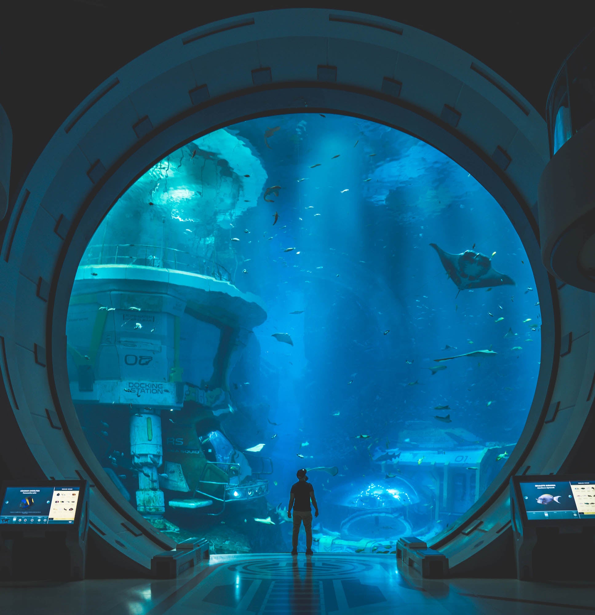 “Tomé esta fotografía en mi último viaje a Abu Dhabi, en un SeaWorld cubierto. Cuando entramos en la sala, me emocioné porque supe de inmediato cómo quería capturar el espacio y que mostrara su magnitud con un sujeto en su lugar”.