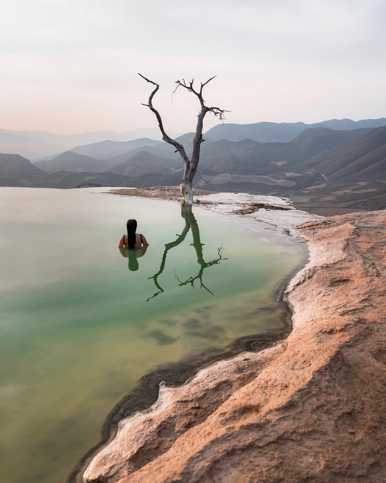 “Esta es mi imagen favorita de las que tomé este año porque es de un lugar que estaba en mi lista de deseos y me encantan los diferentes elementos de la foto, como mi amiga como protagonista, el reflejo perfecto del árbol en la tranquila piscina y las líneas principales de la formación rocosa. Es una versión única de un lugar que siempre quise visitar, así que estaba muy emocionada por ello”.