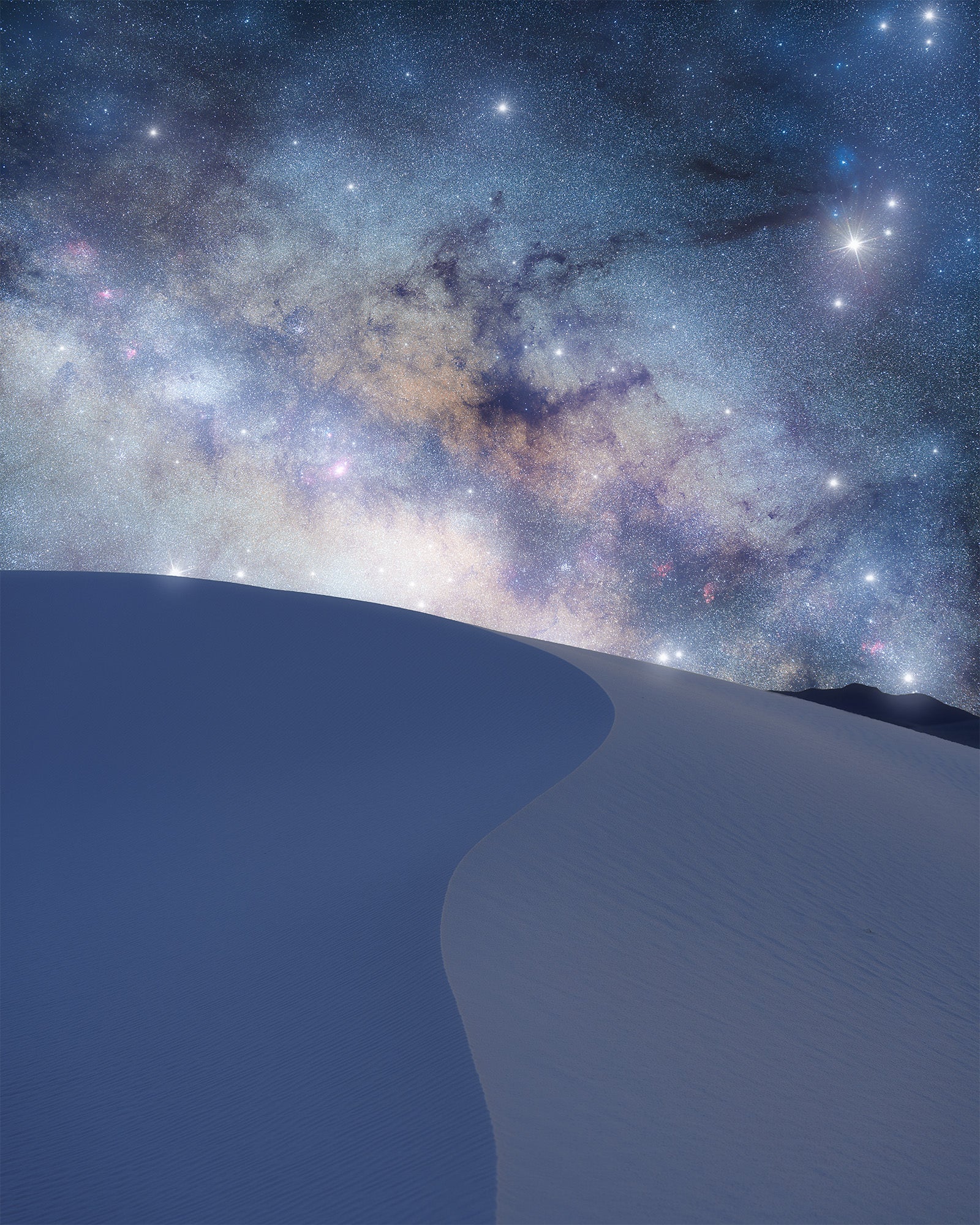Sony 50 mm f/1,4 G Master: Sony lo logra en cuanto a tamaño y portabilidad; este es otro objetivo compacto y potente. Este objetivo es fantástico para capturar los detalles de la Vía Láctea de cerca de una manera que el de 14 mm no puede. El núcleo de la Vía Láctea está lleno de increíbles nebulosas y estructuras que este objetivo realmente resalta. La apertura f/1,4 actúa como un embudo y deja entrar tanta luz que me permite mantener el ISO bajo, especialmente cuando se combina con un rastreador de estrellas, para obtener imágenes nítidas.